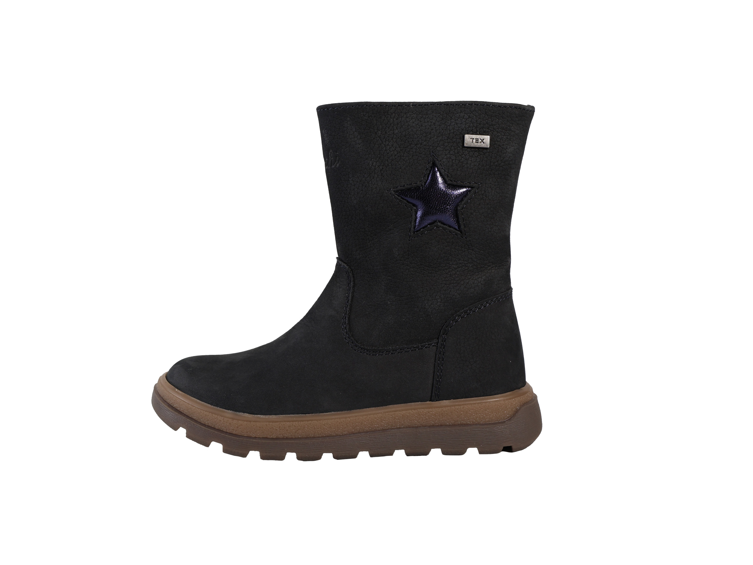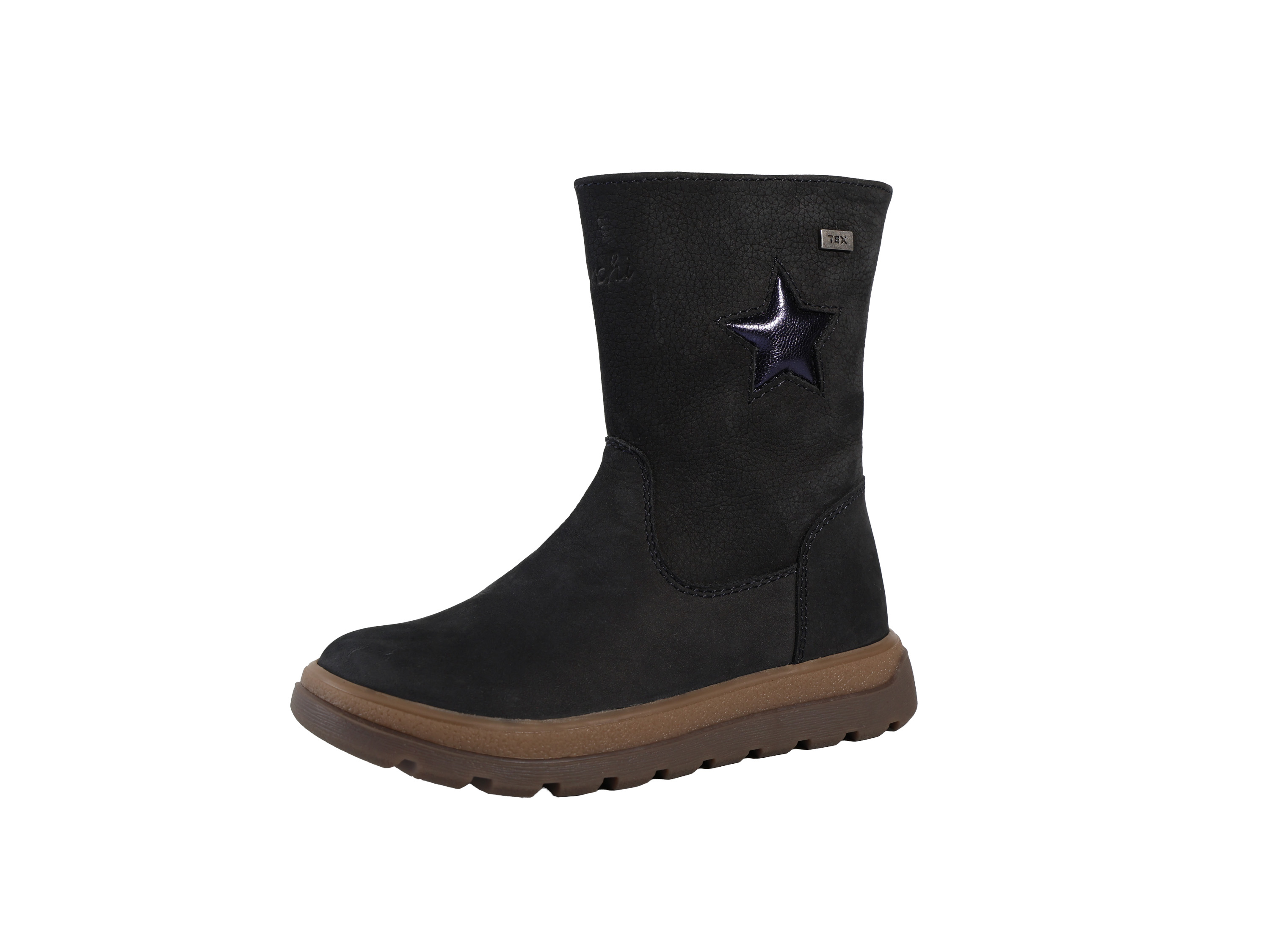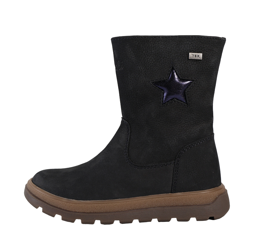 Mit seinem soften Nubukleder und dem glitzernden Stern-Detail wird der Romisha-TEX zum wintertauglichen Lieblingsschuh. Die profilierte Gummisohle gibt sicheren Halt, der seitliche Reißverschluss erleichtert das Anziehen. Die Innensohle ist herausnehmbar – einfach praktisch für den Alltag.